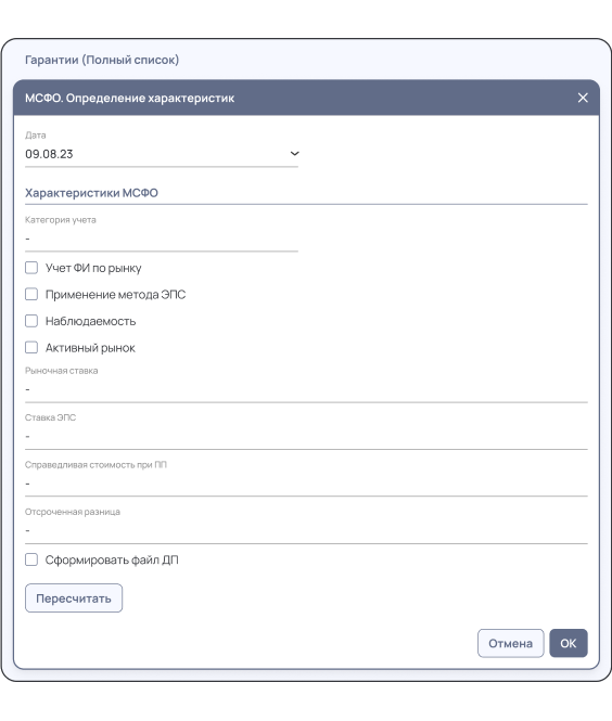 Внедрение, настройка и перевод на стандарты IFRS9 продуктов: