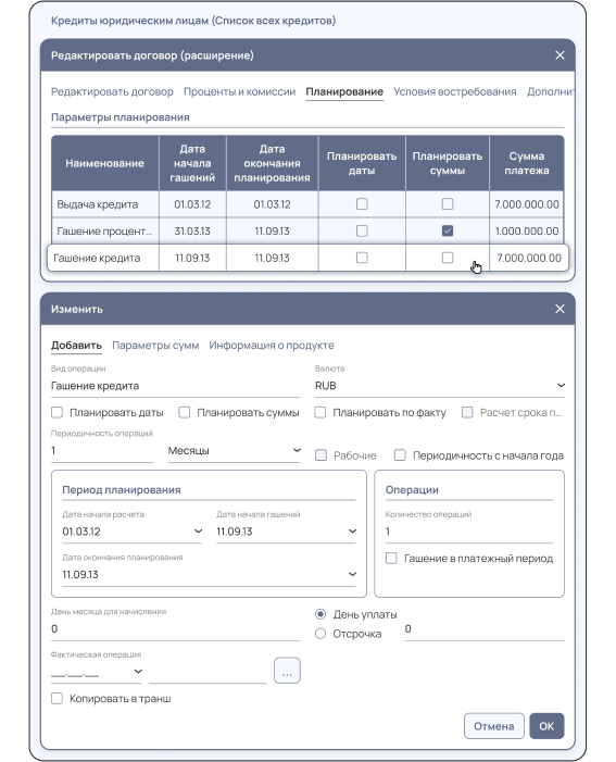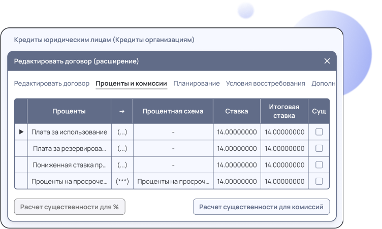 • Реализация функционала регистрации и обслуживания синдицированного кредитного договора.