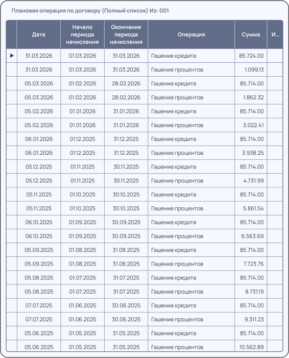 Формирование графика плановых платежей