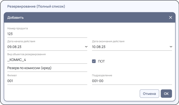 • Настройка продуктов «Кредиты» и «Гарантии» в части формирования резервов, а также продукта «Резервирование»;