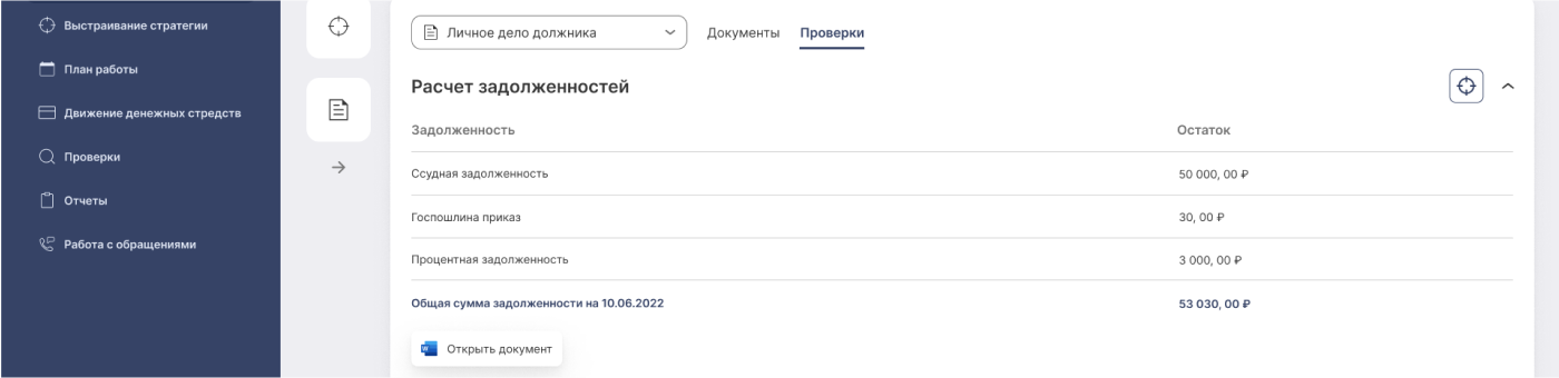 В системе можно удобно систематизировать и хранить данные об официальном судебном решении по каждому должнику.