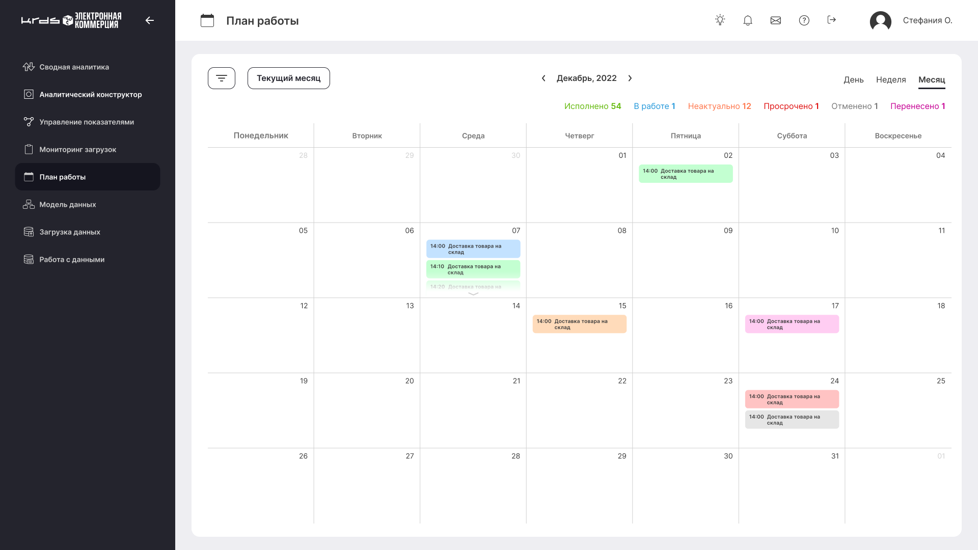Для удобства выполненные и невыполненные задачи обозначены в календаре разными цветами, чтобы наглядно можно было оценить объем проделанной и предстоящей работы.