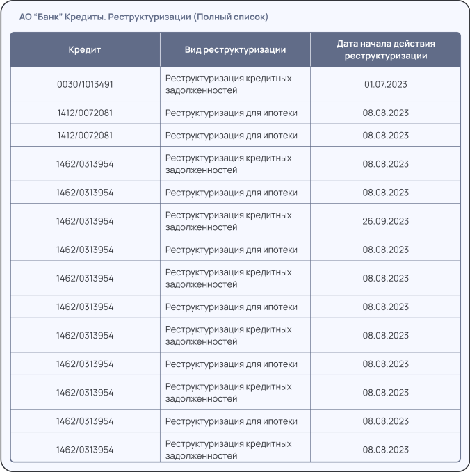 Изменяется график платежей у клиента в соответствии с предоставленными условиями реструктуризации