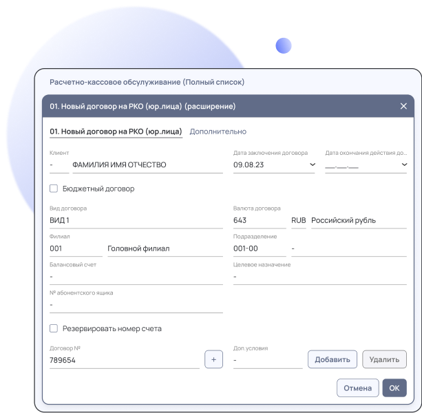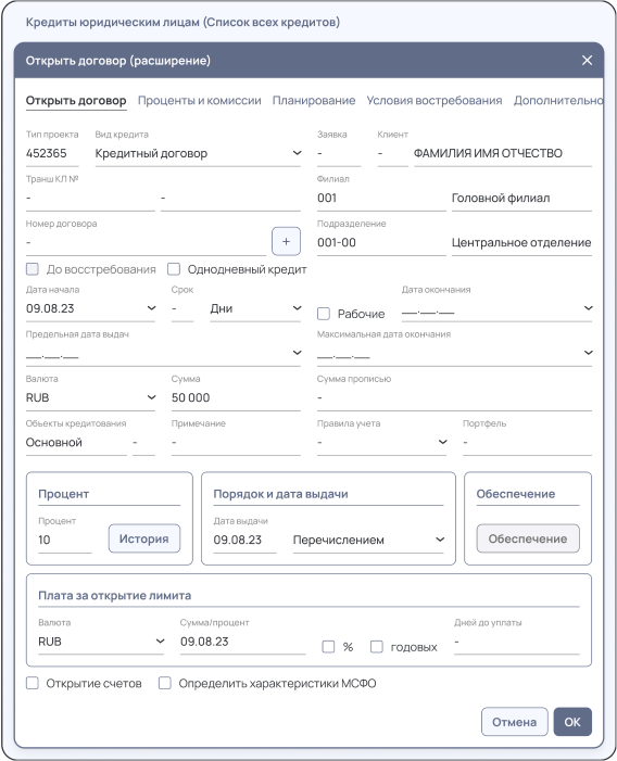 • Реализация функционала регистрации и обслуживания синдицированного кредитного договора.