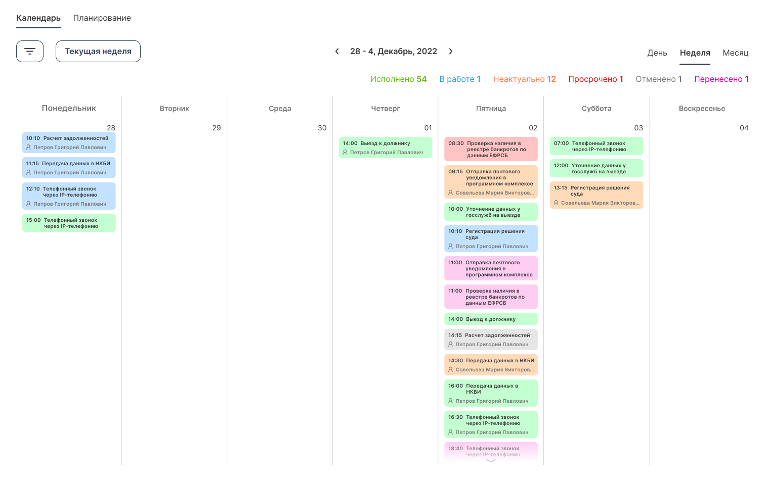 Задачи в календарях можно фильтровать по типу задачи и статусу исполнения.