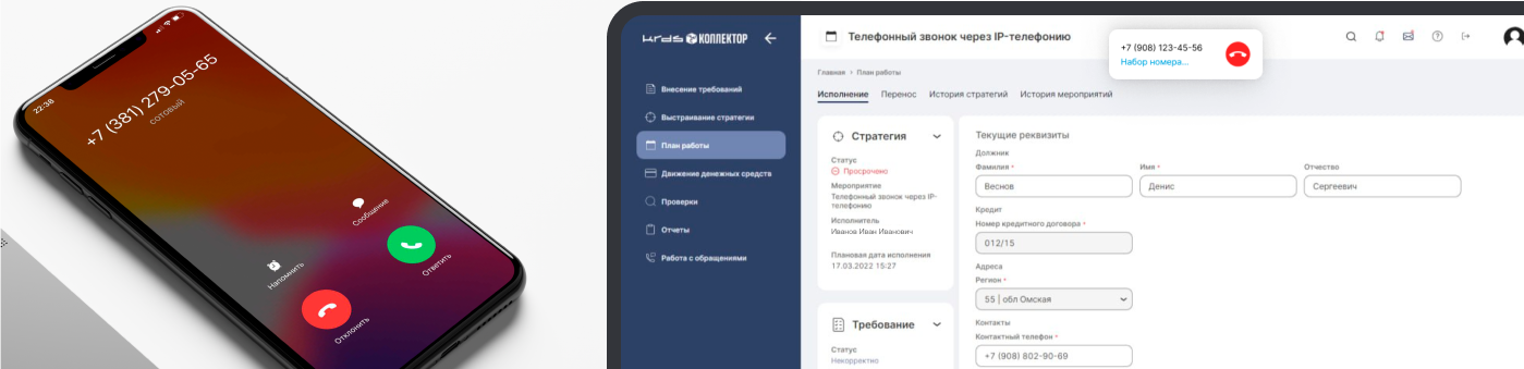 Система сама последовательно дозванивается до должников и переводит звонок на сотрудника, как только должник возьмет трубку. Операторам не надо тратить время на ожидание ответа и на сброшенные звонки.