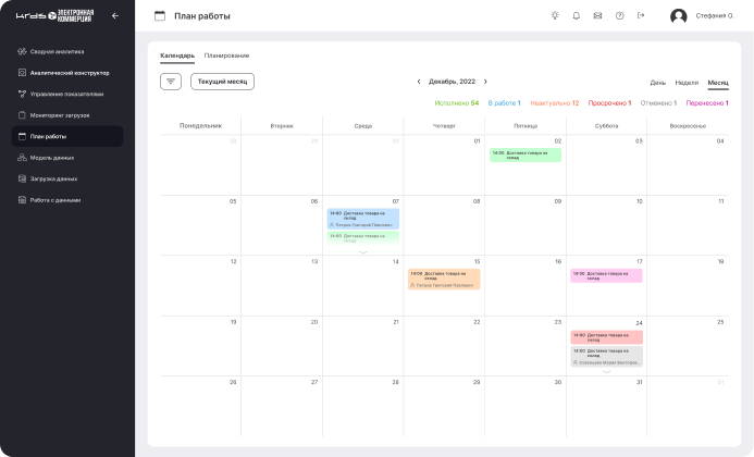 Для удобства выполненные и невыполненные задачи обозначены в календаре разными цветами, чтобы наглядно можно было оценить объем проделанной и предстоящей работы.