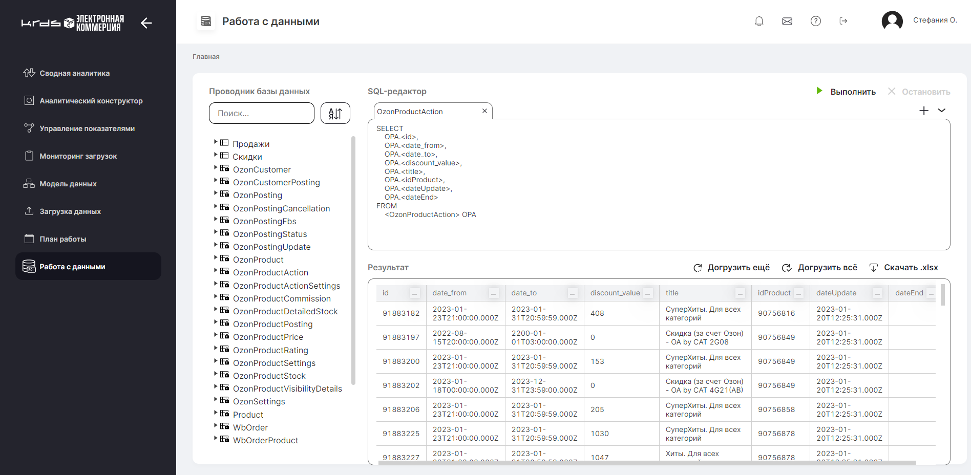 Загрузка данных вручную или из готовых файлов, построение модели данных для четкой автоматической организации информации в системе, получение определенного типа данных по запросу, построение графиков, выгрузка отчетов –весь набор функционала, необходимый для работы с данными, в одном программном комплексе.